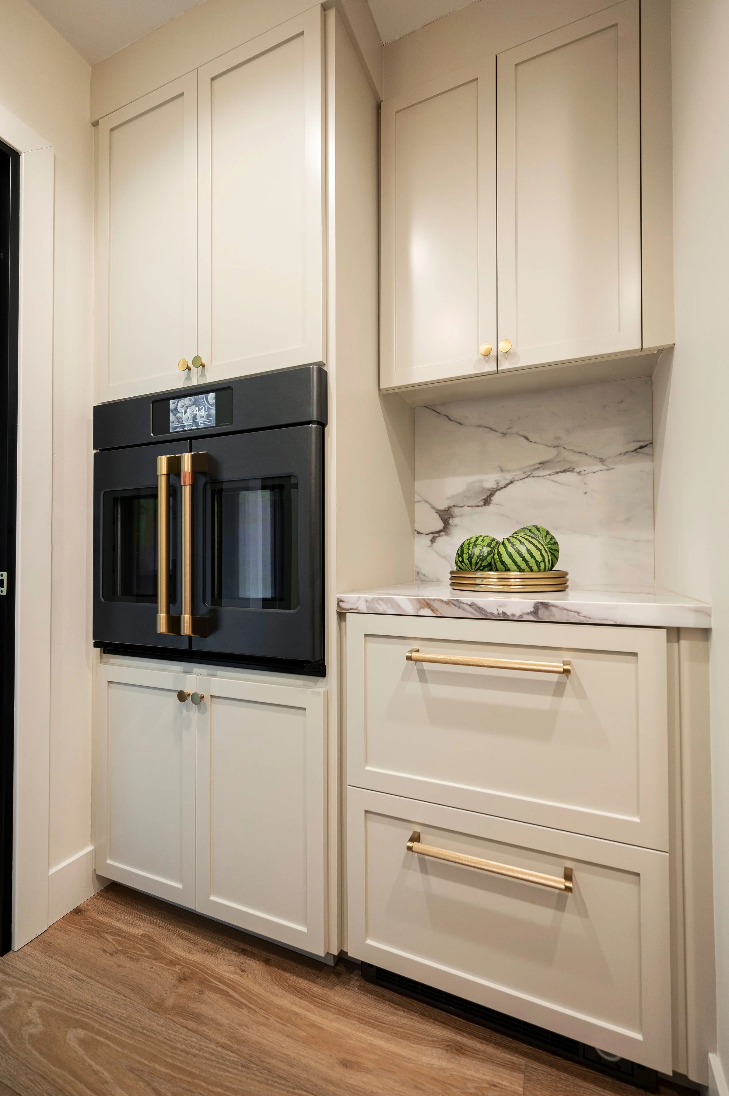 At its core, this kitchen is a reminder that the most beautiful spaces are also the most livable. By reimagining the layout from the ground up, swapping a restrictive peninsula for a welcoming island, and pairing standout elements like the La Cornue range with natural wood tones and dramatic veining, the space feels elevated, welcoming, and made for real life—an intimate jewel box in the middle of Old Fig Garden, designed to perform beautifully and to be enjoyed even more.