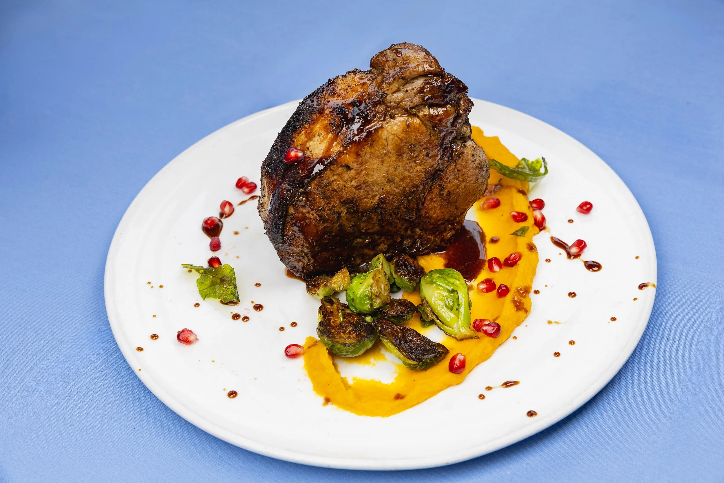 However it was the Braciola di Maiale con Finocchio e Aglio Nero that took center stage. A bone-in pork chop with fennel and black garlic rub play off the caramelized sweetness of butternut squash purée, crisp brussels sprouts, and a vivid pomegranate gastrique. “The pomegranate glaze is such an unexpected yet festive touch,” Laura noticed.