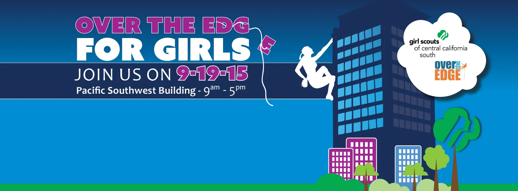 Girl Scouts of Central California South is looking for women and men willing to rope up for the rappelling adventure of a lifetime. You don't have to be an adventure seeker or an adrenaline junkie, just the courage to descend down the highest skyscraper in Fresno. Their council is taking fundraising to new heights and looking for 100 Edgers to rappel down the Pacific Southwest Building (formerly the Security Bank Building) in Downtown Fresno, on Saturday, September 19, 2015. The ticket to participate in our Over the Edge adventure is raising $1,000 for Girl Scout programs and services. You don't need to be an experienced rappeller just at least 14 years old between 110 and 300 pounds. Over the Edge for Girls is a chance to rappel down or send someone you know rappelling down the Pacific Southwest Building in Downtown Fresno – to raise money for Girl Scouts Central California South, a wonderful organization empowering and supporting so many girls throughout the Central Valley.